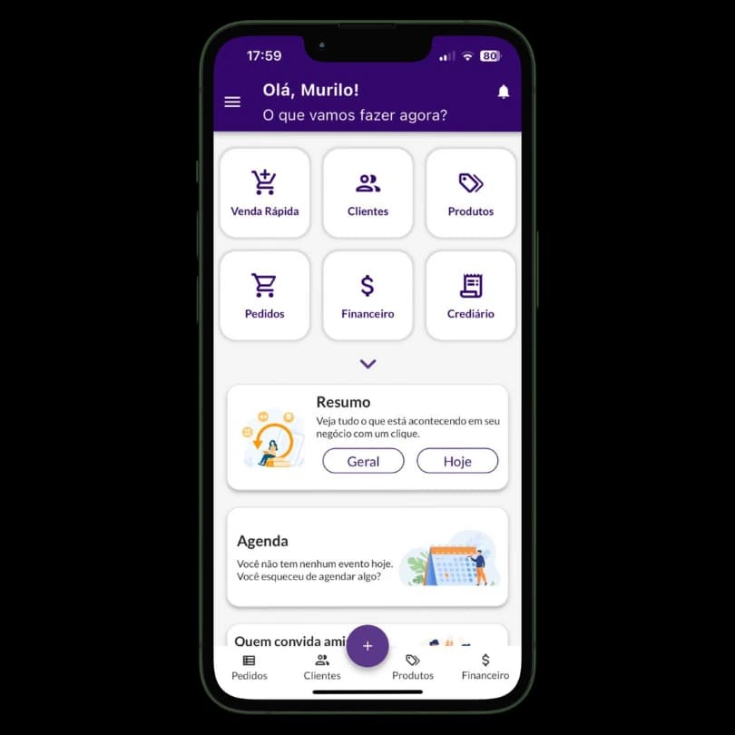 Conta Cliente: Acompanhe cada cliente, suas compras, saldo devedor e pagamentos realizados. Tudo em tempo real.